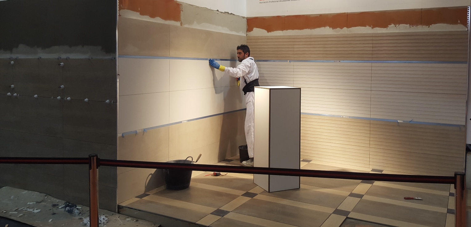 En la muestra se podrá observar a lo largo de los días de la feria las demostraciones de colocación con una amplia oferta en cerámica decorativa representada en las últimas colecciones de Saloni y Ragno con la inclusión de nuevos colores, texturas, relieves, formatos y combinaciones. También se añade la inclusión de demostraciones de corte, manipulación e instalación de láminas cerámicas BPlus en formato 240×120 cm en 6mm de espesor. Se complementa la oferta de cerámica con un ambiente más técnico con el sistema de piscina deportiva de la mano de Gres Aragón.